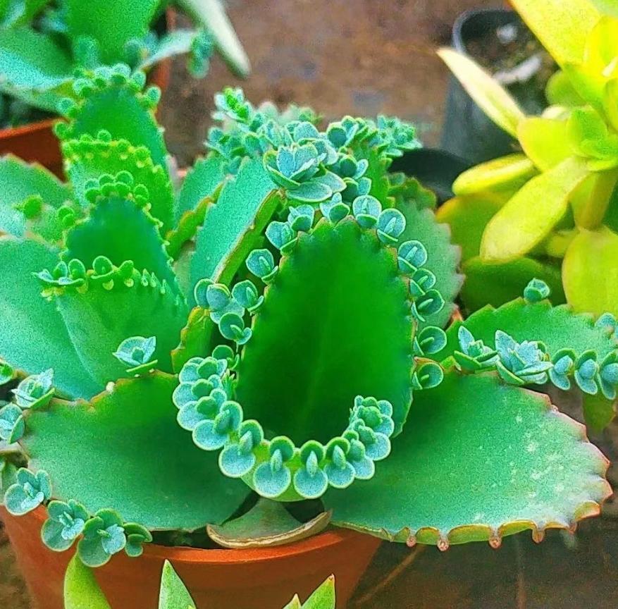 不死鳥,學名落地生根,是多肉植物中的一種。它的葉片邊緣會長出小芽,這些小芽一旦落地就能生根發(fā)芽,繁殖能力驚人。不死鳥不僅生命力頑強,其獨特的形態(tài)也頗具觀賞性。