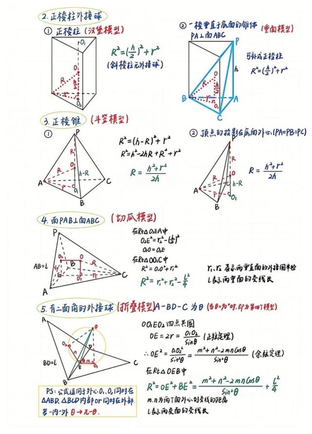 - 空間角計算:異面直線所成角采用平移法,線面角尋找射影關系,二面角通過平面角度量